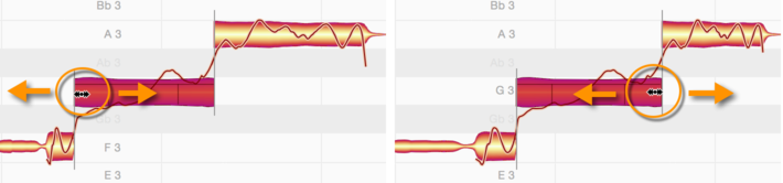 – 音程がずれているだけの場合、ノートをダブルクリックすると、意図されたピッチにスナップされます。