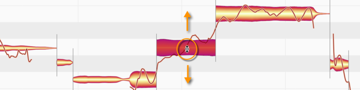 – blobの中央をクリックして上下にドラッグします。ノートは半音単位で移動します。