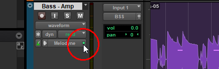 Alternativ können Sie auf das grüne “Licht” neben dem Selektor für Elastic-Audio- oder ARA-Plugins im Spurkopf klicken.