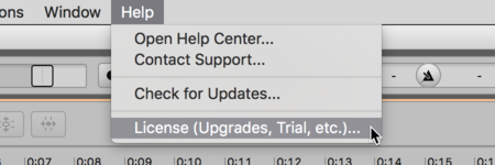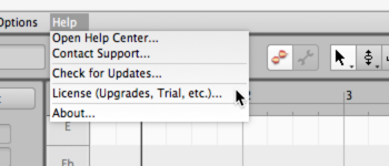 1) Start Melodyne. Next go to the Help menu and select “License”.