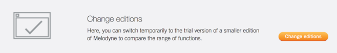 If you wish, you can switch to a smaller edition in the course of the trial period in order to compare the range of functions offered by the various editions. This could be useful, for instance, if you own Melodyne essential and are wondering which of the larger editions to upgrade to. Easy. Just try them all.