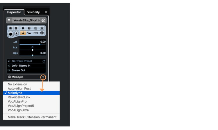 Alternatively, Melodyne can be employed as an extension in the track header,