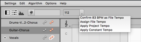 Please note that in Melodyne essential and assistant the entry “Assign File Tempo” is not available, as the Tempo Editor does not feature in these editions.