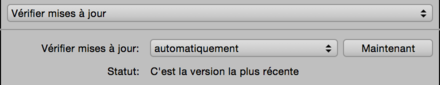 Si vous ouvrez la page « Vérifier mises à jour » dans la boîte de dialogue « Préférences » de Melodyne, vous pouvez opter pour une vérification manuelle des mises à jour (ce qui se fait en cliquant sur le bouton « Maintenant ») plutôt que de laisser Melodyne le faire automatiquement pour vous au lancement du programme. Nous vous recommandons de conserver le réglage par défaut (« Automatiquement ») afin de ne jamais manquer une mise à jour importante.