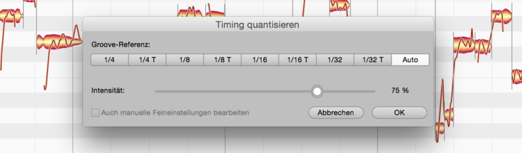 Timing quantisieren: Verschiebt die Noten mit wählbarer Intensität auf das gemeinte Timing oder ein frei wählbares Notenraster.