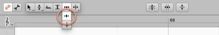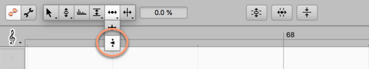 Wenn Sie es auswählen, erscheint am Beginn jeder Note ein Punkt. Indem Sie das Werkzeug irgendwo auf der Note platzieren (Sie müssen nicht den Punkt selbst anfassen) und vertikal ziehen, können Sie den Punkt nach oben oder unten bewegen.