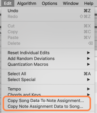 For this reason, we speak in the one case of “project chords” that relate to the entire song and in the other of “file chords”, which are only visible in Note Assignment Mode and relate only to the instrument in question. In the Edit menu, you will find commands that allow you to replace file chords with project chords, and vice versa.