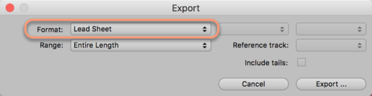 In the Export dialog, you can select the option “Lead Sheet” in order to save a MIDI file in which the chord sequence of your song is displayed in the form of the corresponding MIDI notes.