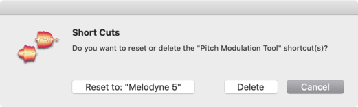 - “Melodyne 5”: This restores the default shortcut for the command in question. (In the case of many commands – namely those for which there is no default shortcut – choosing “Melodyne 5” here will have the same effect as choosing “Delete”).