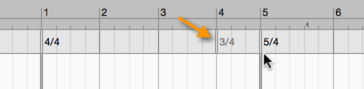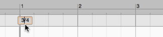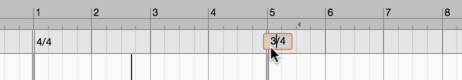 To change the time signature, double-click on the time signature currently displayed (e.g. 4/4). An input field appears into which you can enter a new time signature. If you do not wish to alter the denominator, it suffices to change the numerator, and vice versa. To switch from 4/4 to 3/4, for example, it is enough to replace the first “4” with a “3”.