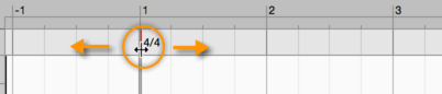 If the beginning of the first bar (or “measure”) is not displayed where – knowing the musical content – you would expect to find it, just click anywhere in the Time Signature Editor and drag to the left or right, as the case requires, until Bar 1 is correctly aligned. As you do so, the bar lines will move one beat (as defined by the denominator) at a time. The current setting of the Time Grid has no effect upon what happens in the Time Signature Editor.