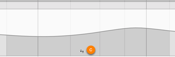 - C:* The area above the tempo curve. By clicking here and dragging the mouse pointer horizontally, you select the segment of the curve you wish to edit.