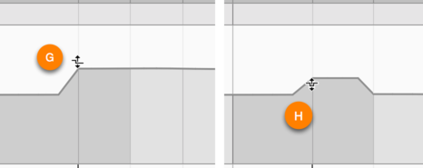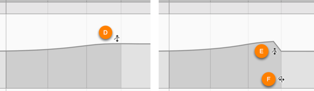 A (just above the curve): With this tool, you can form a “hill” or a “valley”, depending upon whether you drag upwards or downwards. The highest or lowest point, respectively, of the hill or valley will be perpendicular to the point at which you begin dragging, so the result will not necessarily be symmetrical.