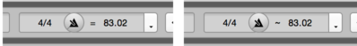 An equals sign (“=”) in front of the tempo indicates that the tempo is constant. A tilde (“~”) denotes a variable tempo. These indications, if the Tempo Editor is closed, apply to the whole project. If the Tempo Editor is open, they relate to the segment of the tempo curve selected. If no segment is selected, the equals sign or tilde refer to the entire project.