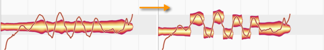The creative use of note separations– How to control the transitions between neighboring notes, enhancing minute details through skillful editing. Shown here: Melodyne 5 studio, smaller editions may differ.