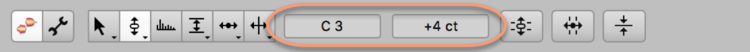 À titre d’alternative à l'édition avec l’outil Hauteur des notes sélectionnées, vous pouvez saisir la valeur désirée pour la note et la déviation en centièmes de demi-ton par rapport au tempérament égal dans les champs situés près de la barre d’outils ou dans l’inspecteur de notes. L’inspecteur de notes vous permet aussi de choisir la fréquence en hertz de la ou des notes sélectionnées. Dans chaque cas, vous augmentez ou diminuez la valeur actuelle en cliquant sur le champ pertinent et en tirant le curseur vers le haut ou le bas.