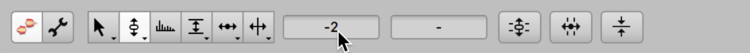 Si vous avez sélectionné plusieurs notes de hauteurs différentes, trois tirets s’affichent dans les cases, remplacés ensuite, quand vous cliquez et tirez dans la case, par les valeurs décrivant l'étendue des changements relatifs effectués.