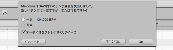 *重要: * 可変テンポで作業する場合(Liveのアレンジメントビューでマスタートラックのソングテンポにオートメーションを設定)、MelodyneとLiveが同期しなくなったり、転送が中断したりすることがあります。これを回避するには、まずMelodyneにテンポ変更のないトラックすべてを転送しておき、その後Melodyneで編集したトラックをテンポオートメーションを適用する前にレンダーします。