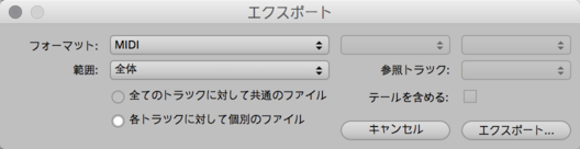 共通のMIDIファイルを作成する場合、それぞれ異なるMIDIチャンネルが各トラックに割り当てられ、その後このMIDIファイルに名前を付けることができます。各トラックに対して個別のMIDIファイルを作成する場合、各ファイルにはトラックと同じ名前が付けられます。