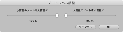 もちろん、マクロを開く前に1つのノートのみ選択している場合、選択対象の平均音量と選択されているノートの音量は同じになるため、スライダーは影響をもちませんん。