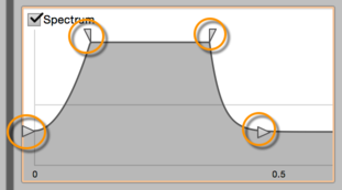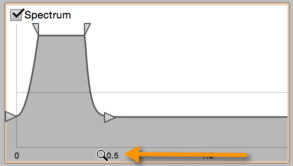 カーブを再形成する際、元の平均スペクトルが細い線で表示されます。再生中、その瞬間のスペクトルが、現在のカーブを上下に動く丸で示されます。