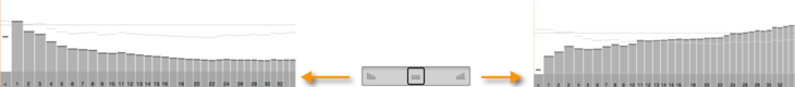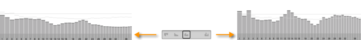 輪郭: このスライダーを右に動かすと、隣り合うバー間の高さの違いが大きくなり、山は高く、谷は深くなり、一般的に表示の輪郭がシャープになります。スライダーを左に動かすと逆の効果が生まれ、中央に向かって動かすにつれて徐々に元の輪郭に戻り、さらに左に動かすとフラットになります。