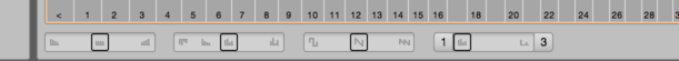 各エンベロープの下のルーラーをドラッグして、エンベロープディスプレイに示される時間の長さとエンベロープの作成に対して使用可能な時間の長さを秒単位で決定できます。