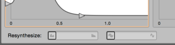 この作業エリアには3つのエンベロープがあり、それぞれ、スペクトル編集の強度、フォルマントシフト、ノートのボリュームをダイナミックにコントロールできます。ここにも、サウンドエディターの再合成を調整する2つのグライダーがあります。