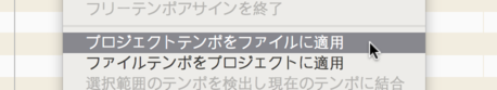 [編集]>[テンポ]>[プロジェクトテンポをファイルに適用]を選択すると、ファイルのテンポが無視され、プロジェクトのテンポによって置き換わります。
