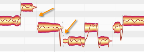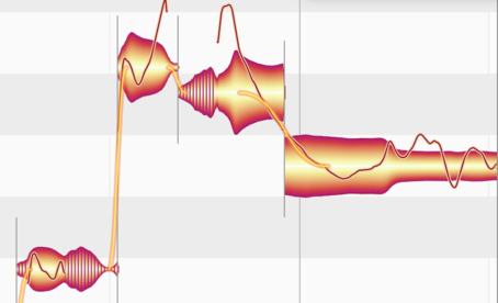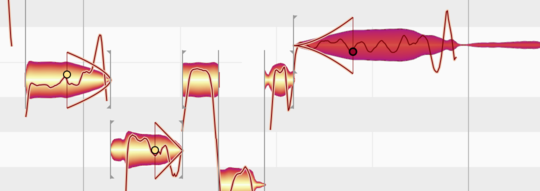 [ピッチカーブを表示]を選択すると、音の音高を示す細い曲線が各blob内に表示されます。