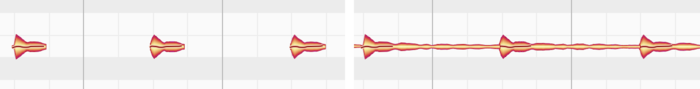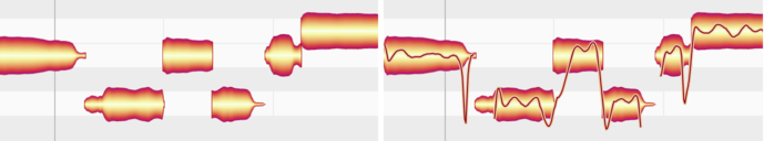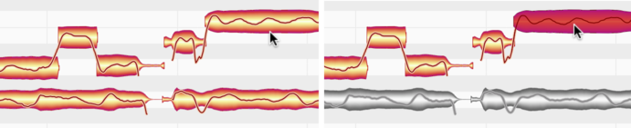 左は何も表示されていない(ノートエディター表示オプションで何も選択していない場合の)blob、右はピッチカーブが選択されている場合のblobです。